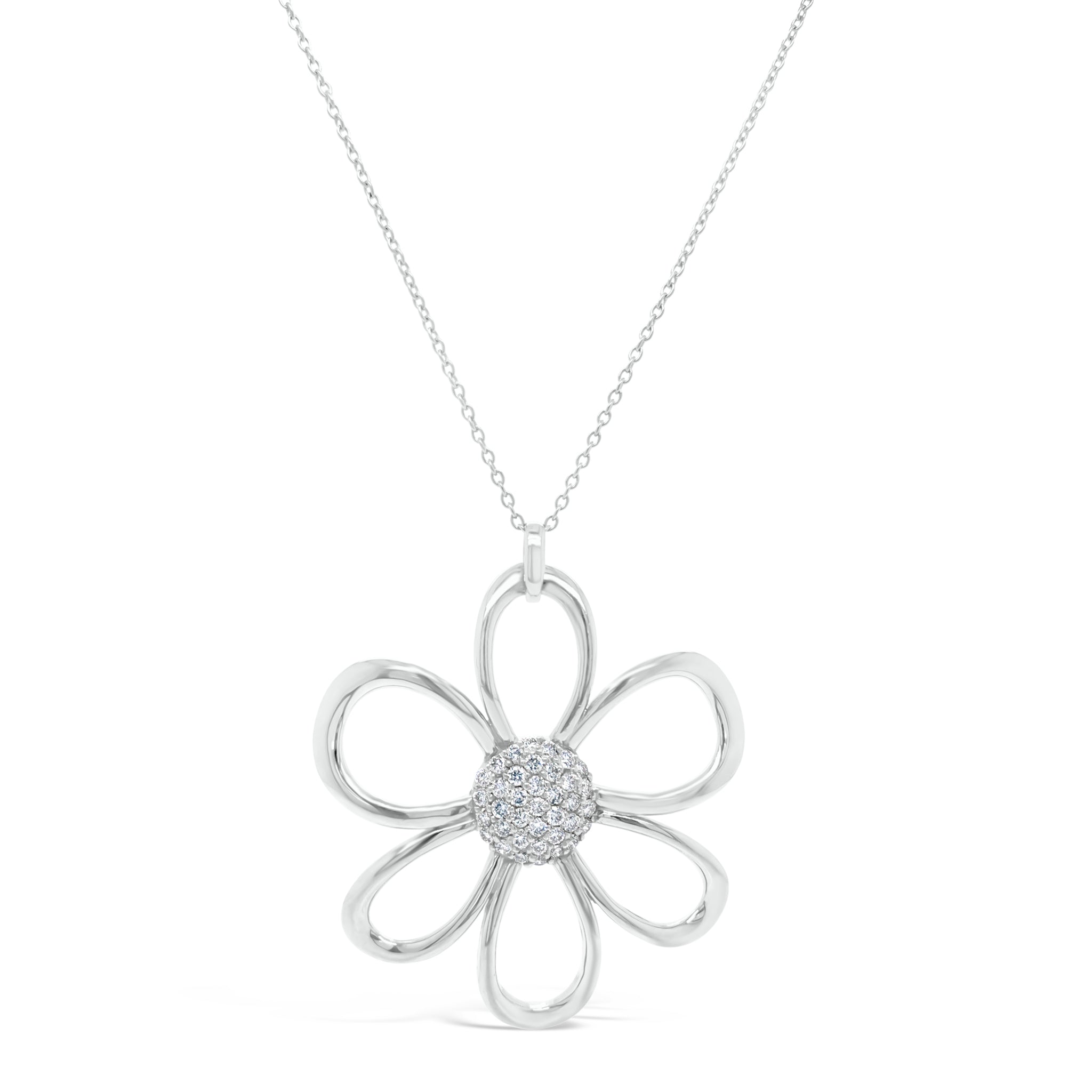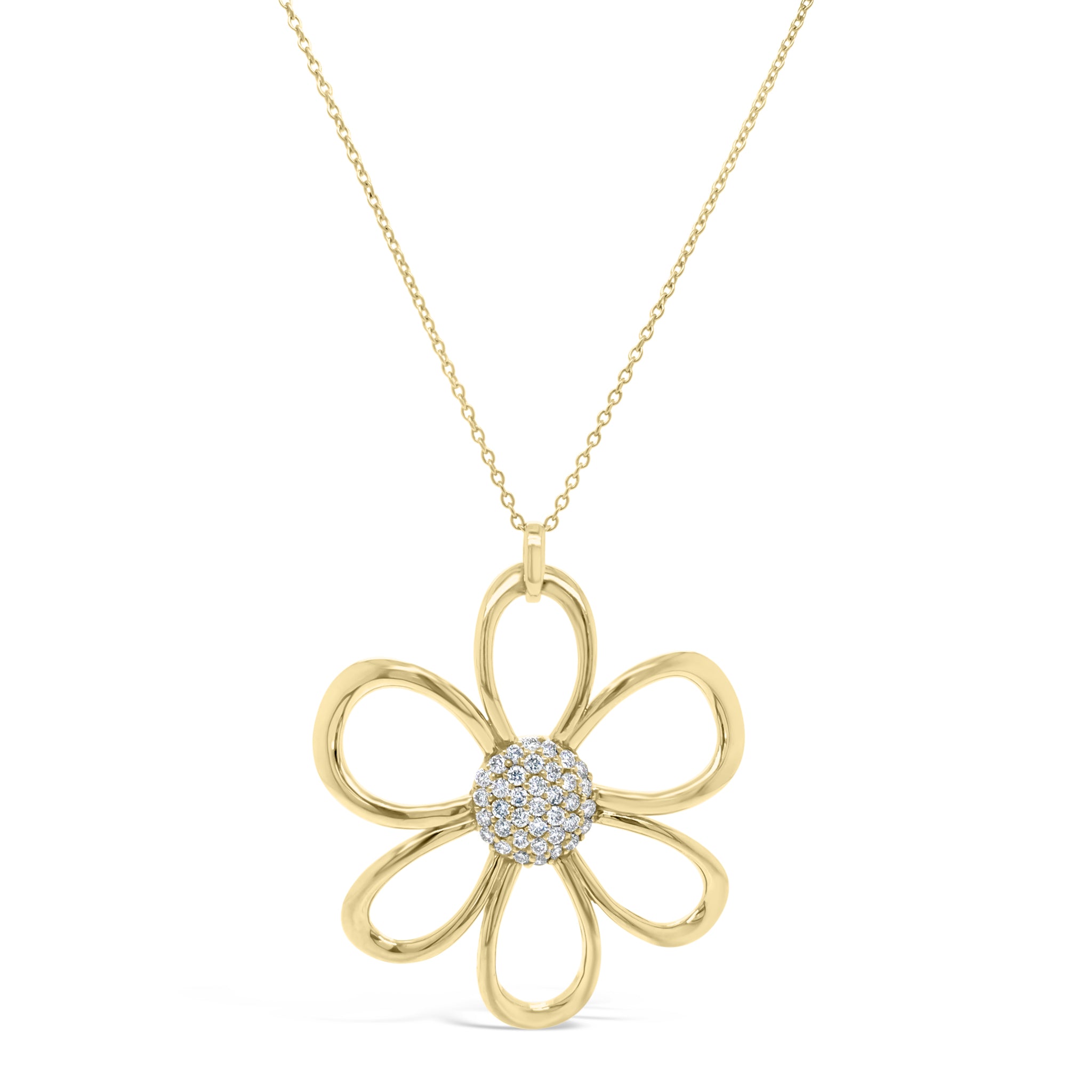 Bright, cheerful and elegant, this 14K gold daisy pendant shines with an eye-catching setting of diamonds. Regardless of the season, this necklace is sure to add a little extra spring to your step.