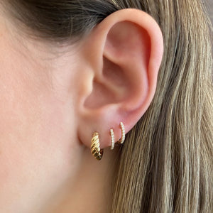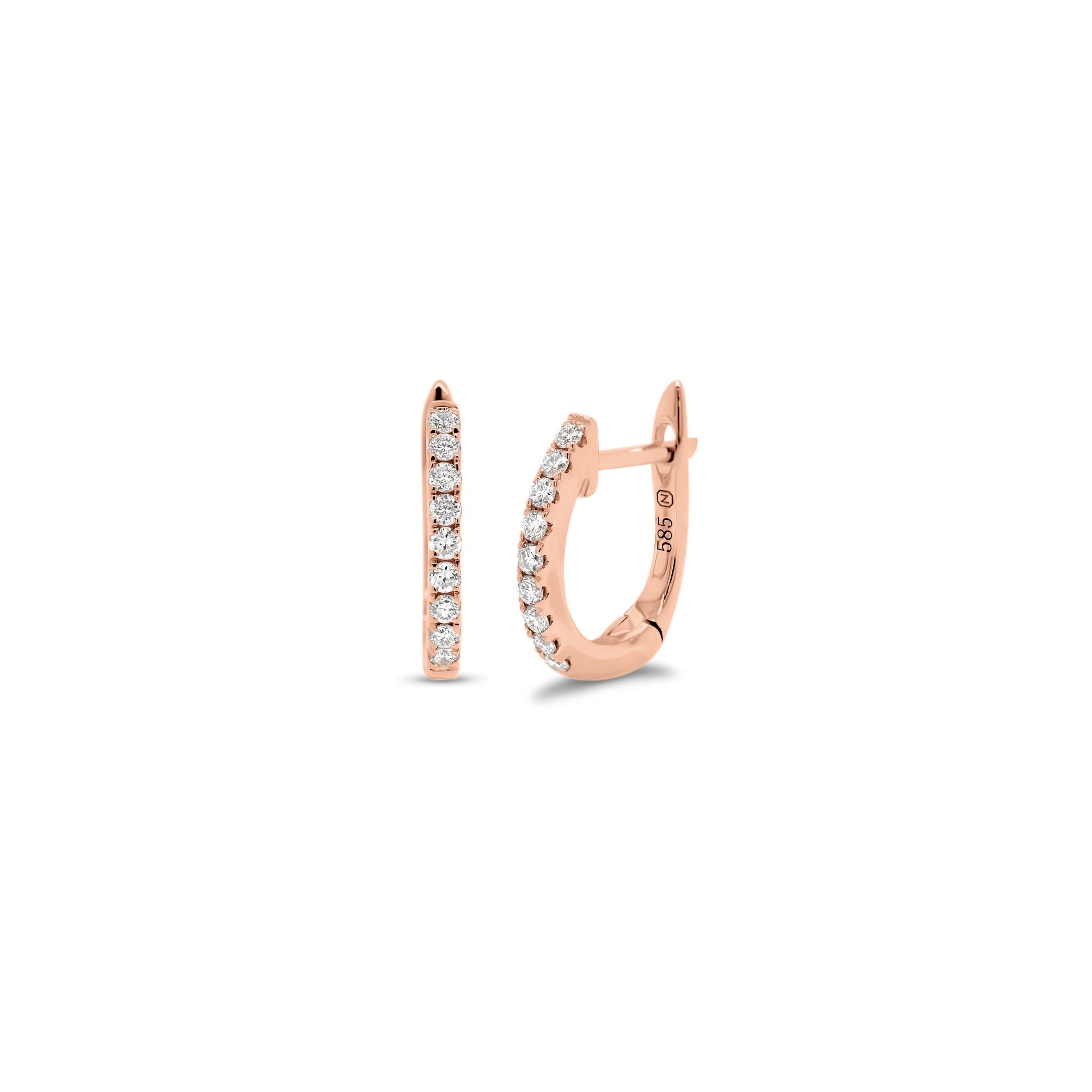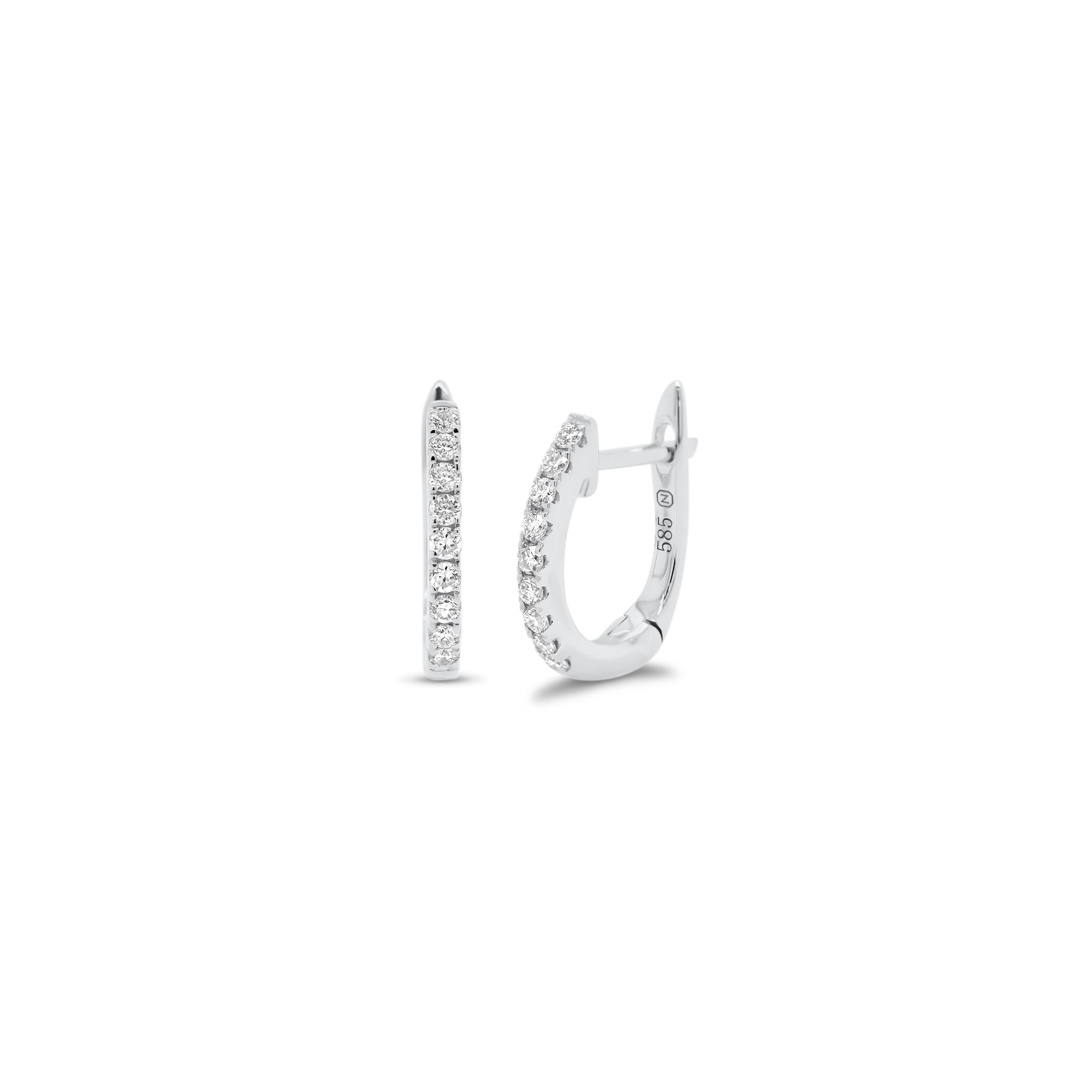 Add a touch of sparkle to your looks with these chic huggie earrings. They feature 18 petite round diamonds, precisely set in lustrous 14K gold.