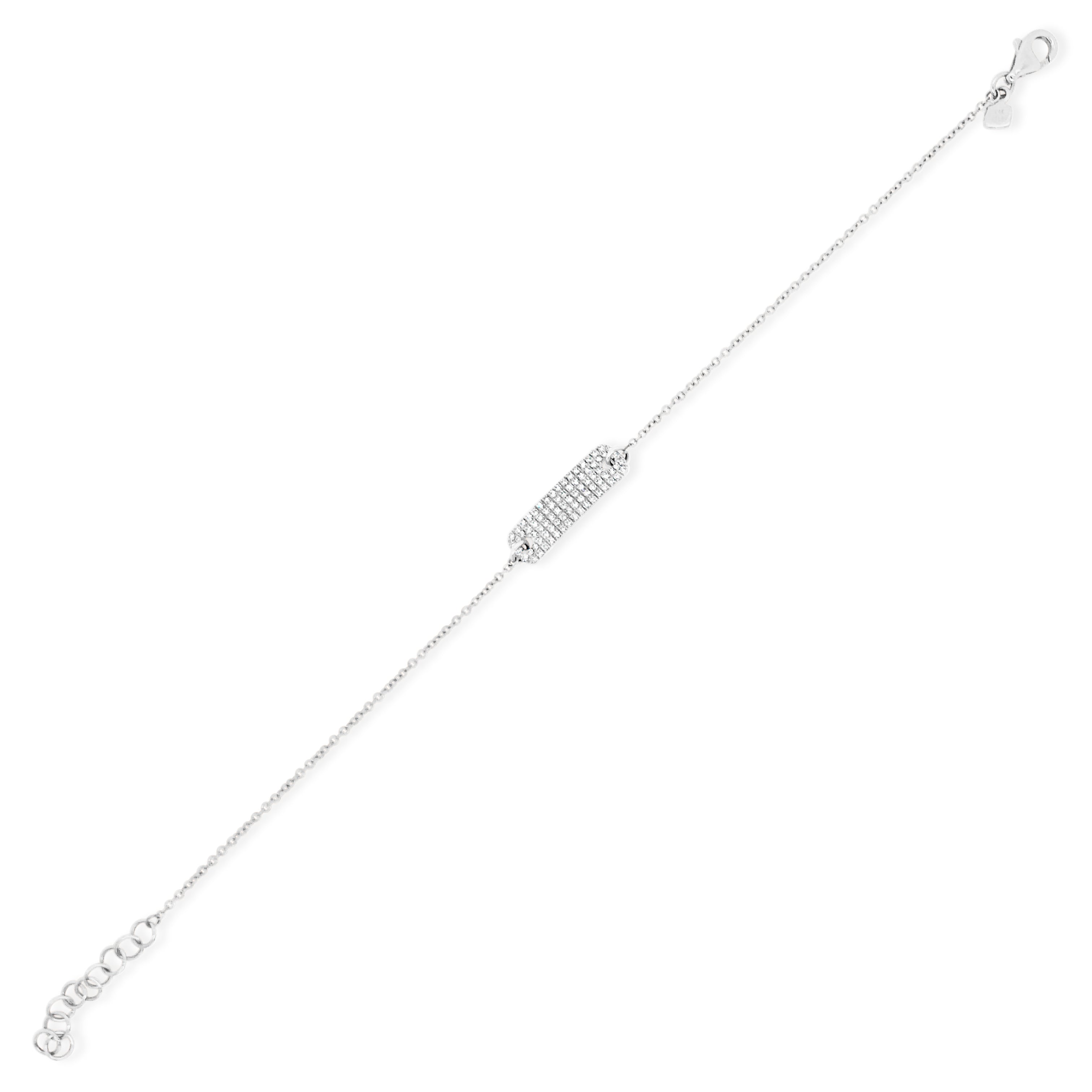 An elegant diamond-studded rectangle dazzles on a dainty cable chain. This beautiful yet simple bracelet is the perfect piece to wear on its own or stacked with other bracelets.
