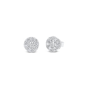 Step up your style with these glam stud earrings, complete with round diamonds encircled by diamond halos.