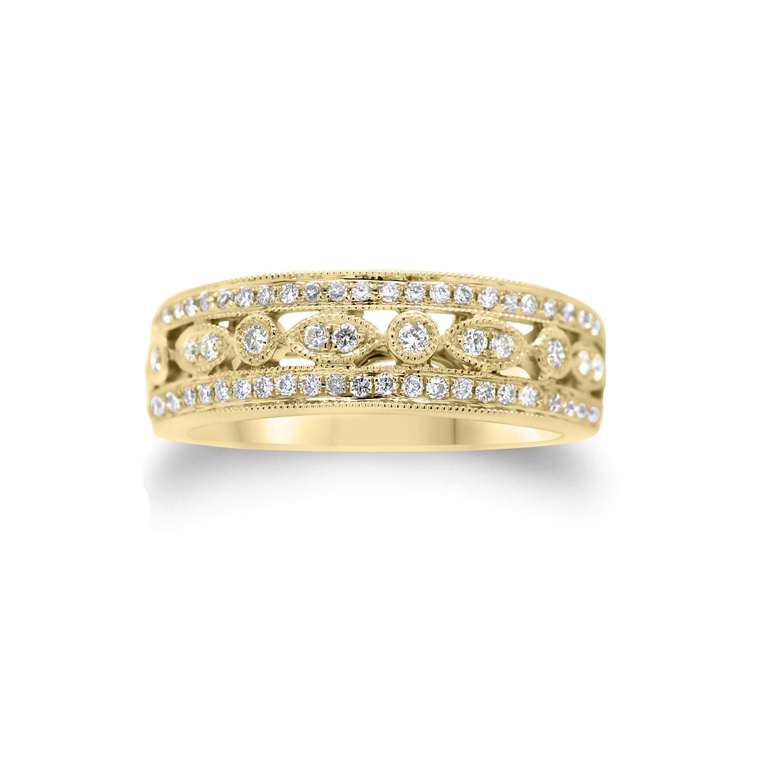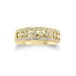 We love the look of mixed metals! Featuring a pattern of round and marquise shapes set with diamonds and framed by diamond bands, this piece exudes a classic and sophisticated style.