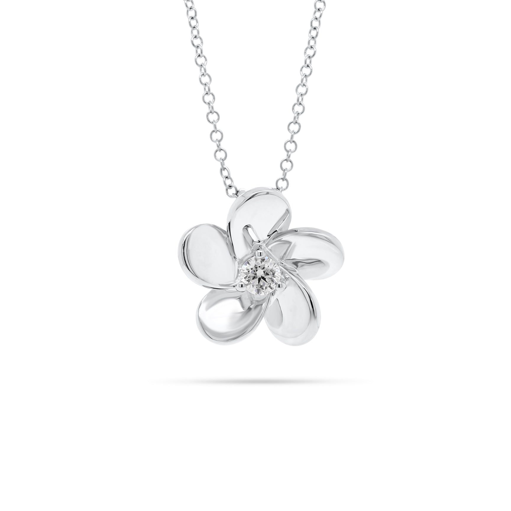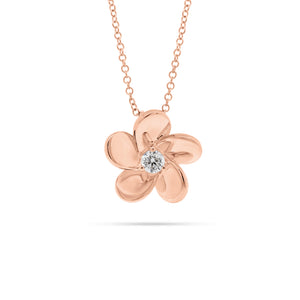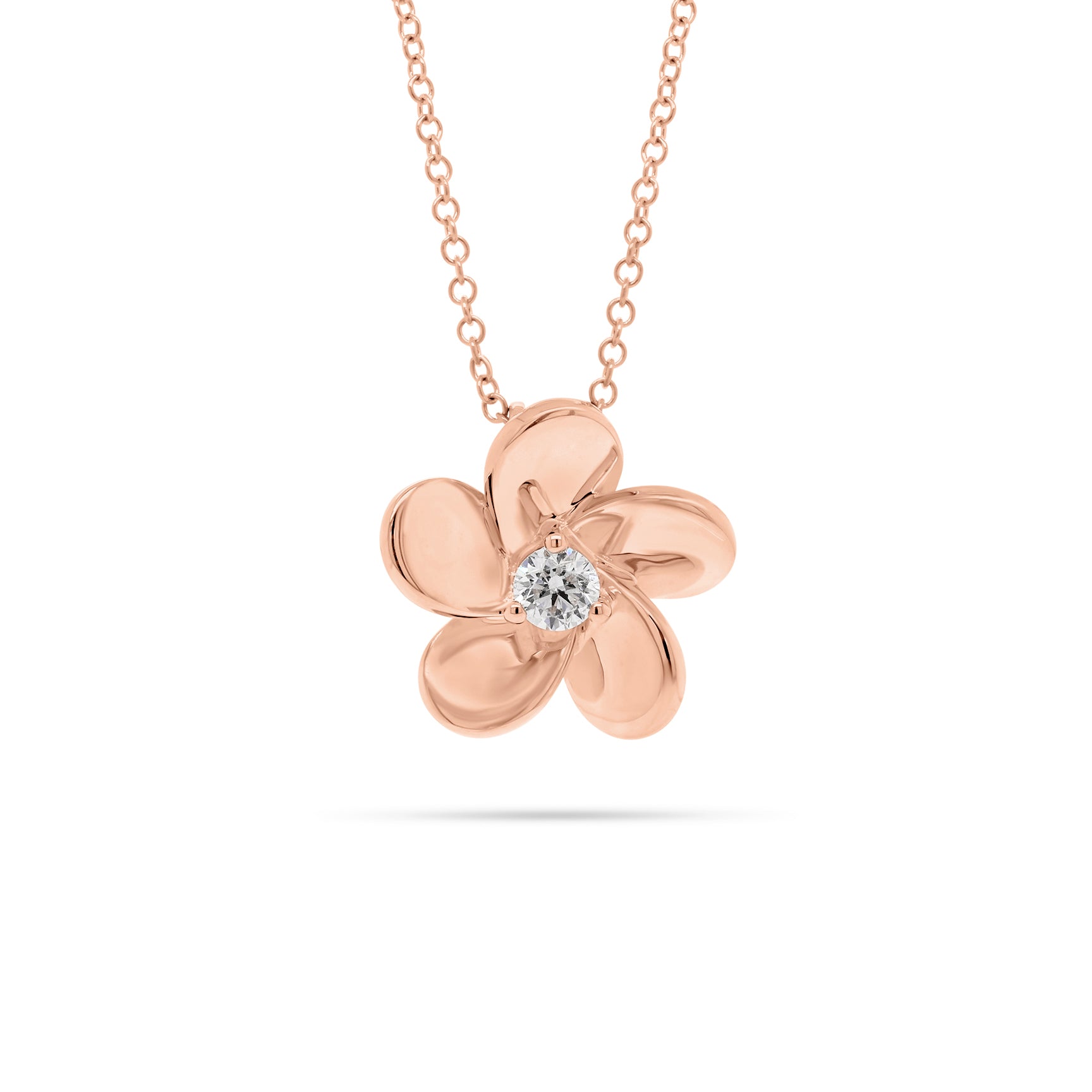 Chic and dainty, this pendant features a multidimensional flower design in 14K gold. A round brilliant-cut diamond set at the center offers the perfect touch of sparkle.
