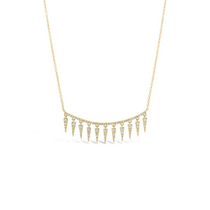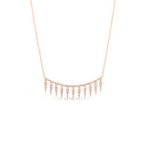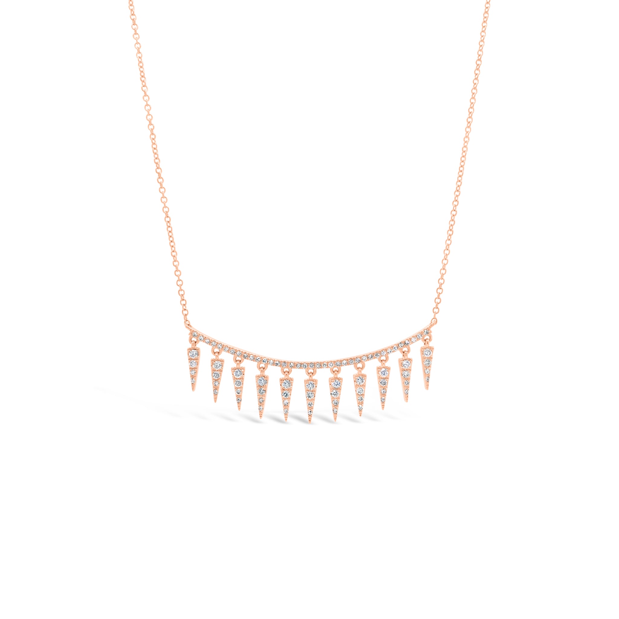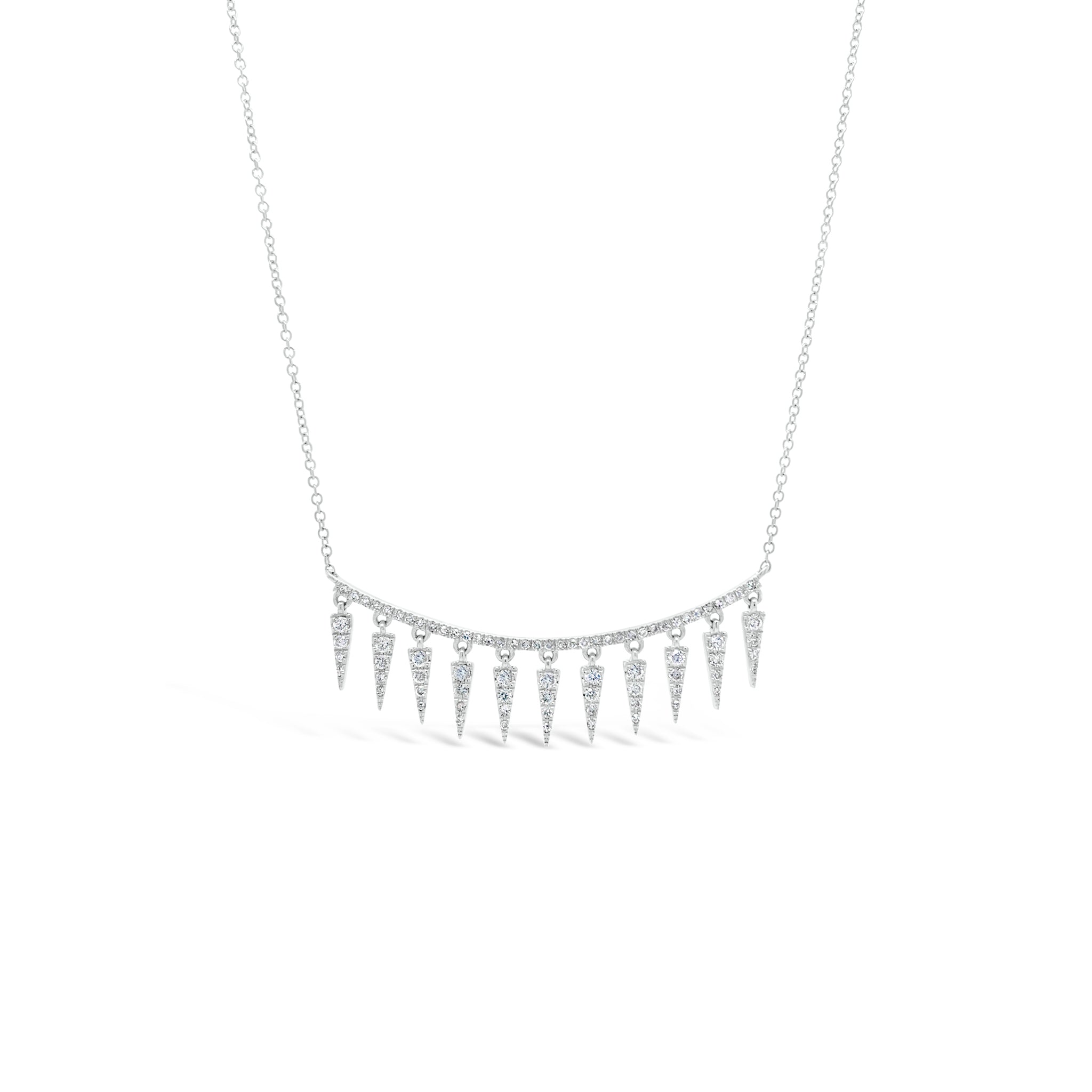 A little bit of edge, a lot of chic — this stylish piece features dainty diamond spikes dangling from a delicate diamond-encrusted bar. It’s an on-trend necklace that will instantly elevate your style.