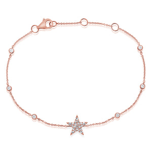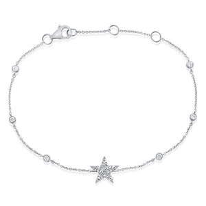 This twinkling diamond star bracelet is a welcome addition to any arm party. With diamond bezels set along a delicate cable chain, the piece adds just the right amount of sparkle to any look.