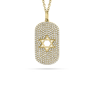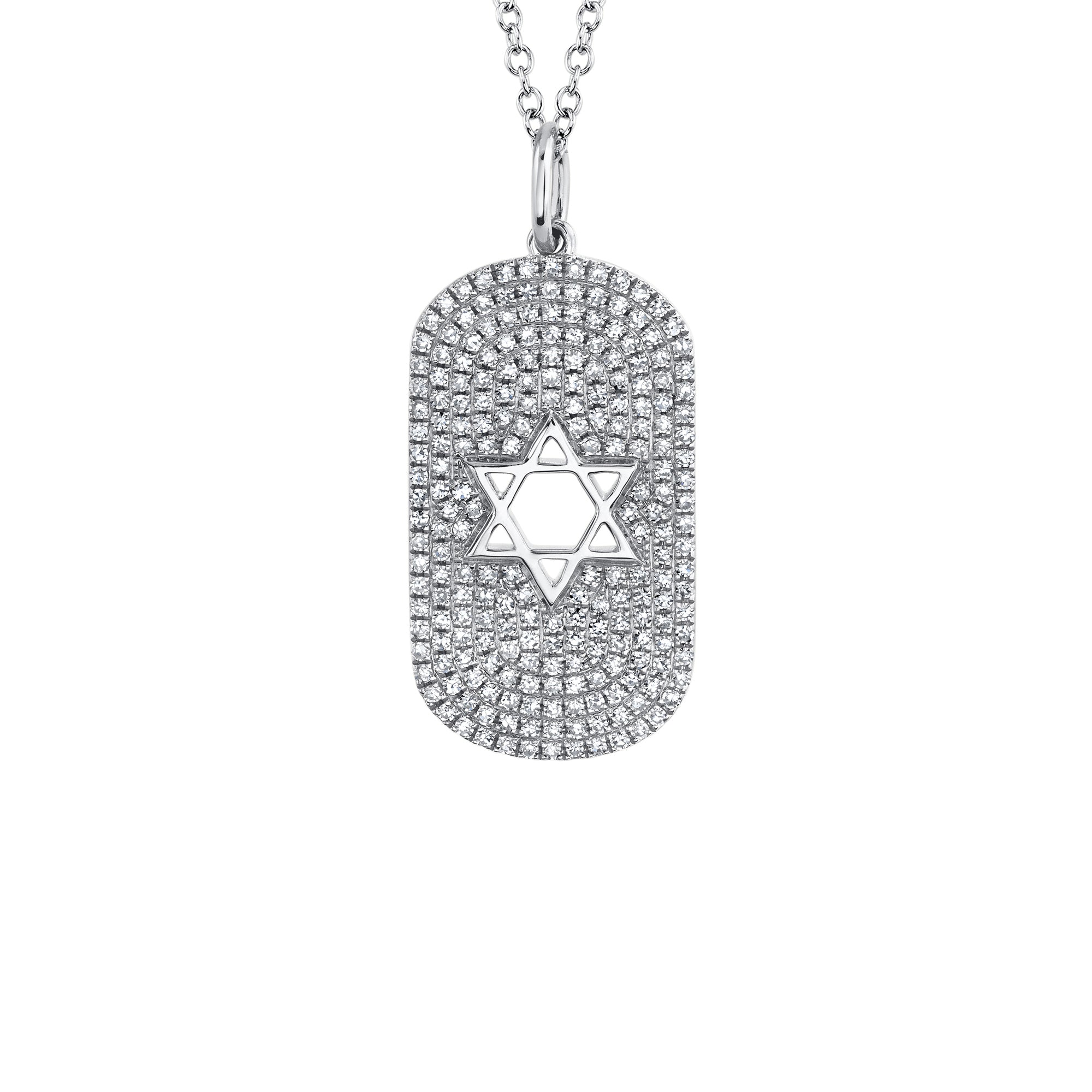 This diamond-encrusted dog tag necklace features the Star of David. It makes for a beautiful and unique bat mitzvah, holiday, or birthday gift.