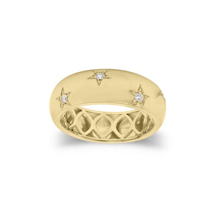 This chic and unique piece features a band of lustrous 14K gold and twinkling diamond stars. It’s the perfect blend of elegance and whimsy.
