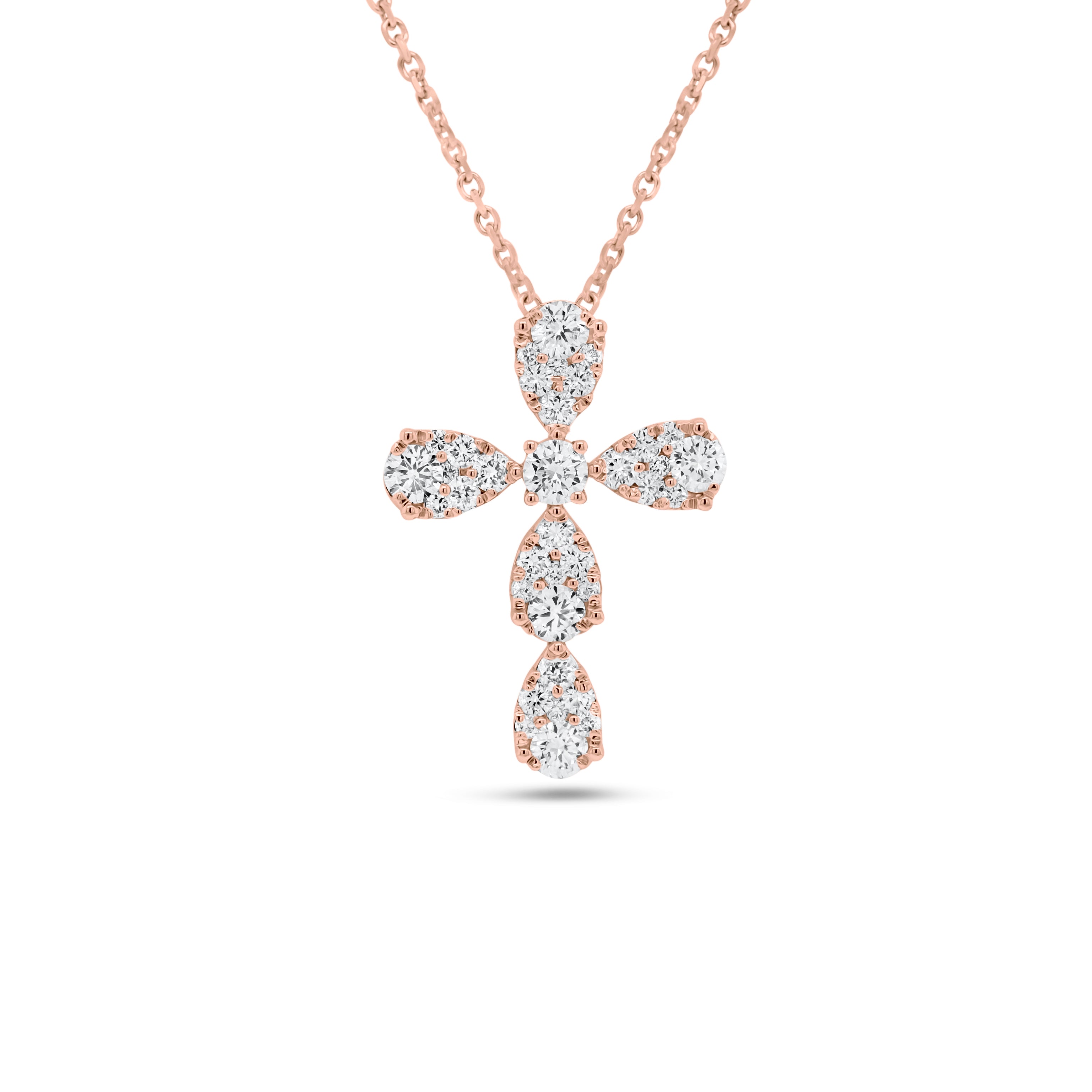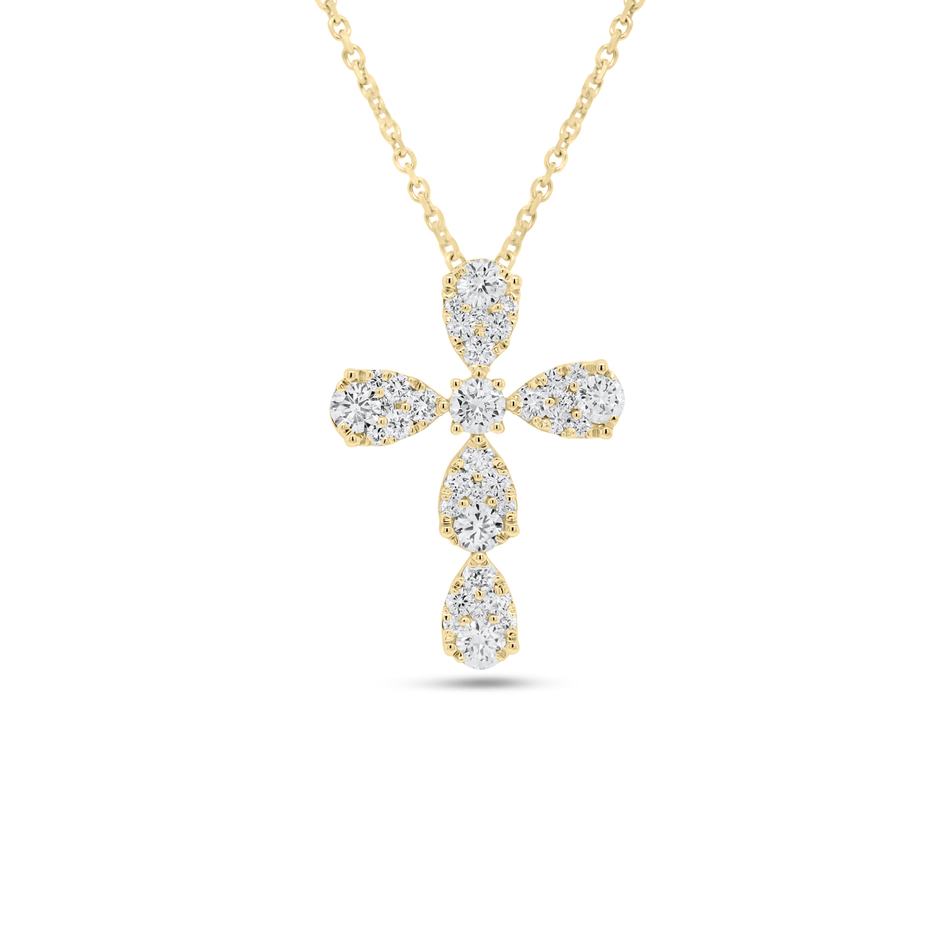 Express your faith with style with this gorgeous diamond teardrops cross pendant. Featuring glittering round brilliant-cut diamonds, this necklace is a beautiful gift for a confirmation, birthday, or any milestone.