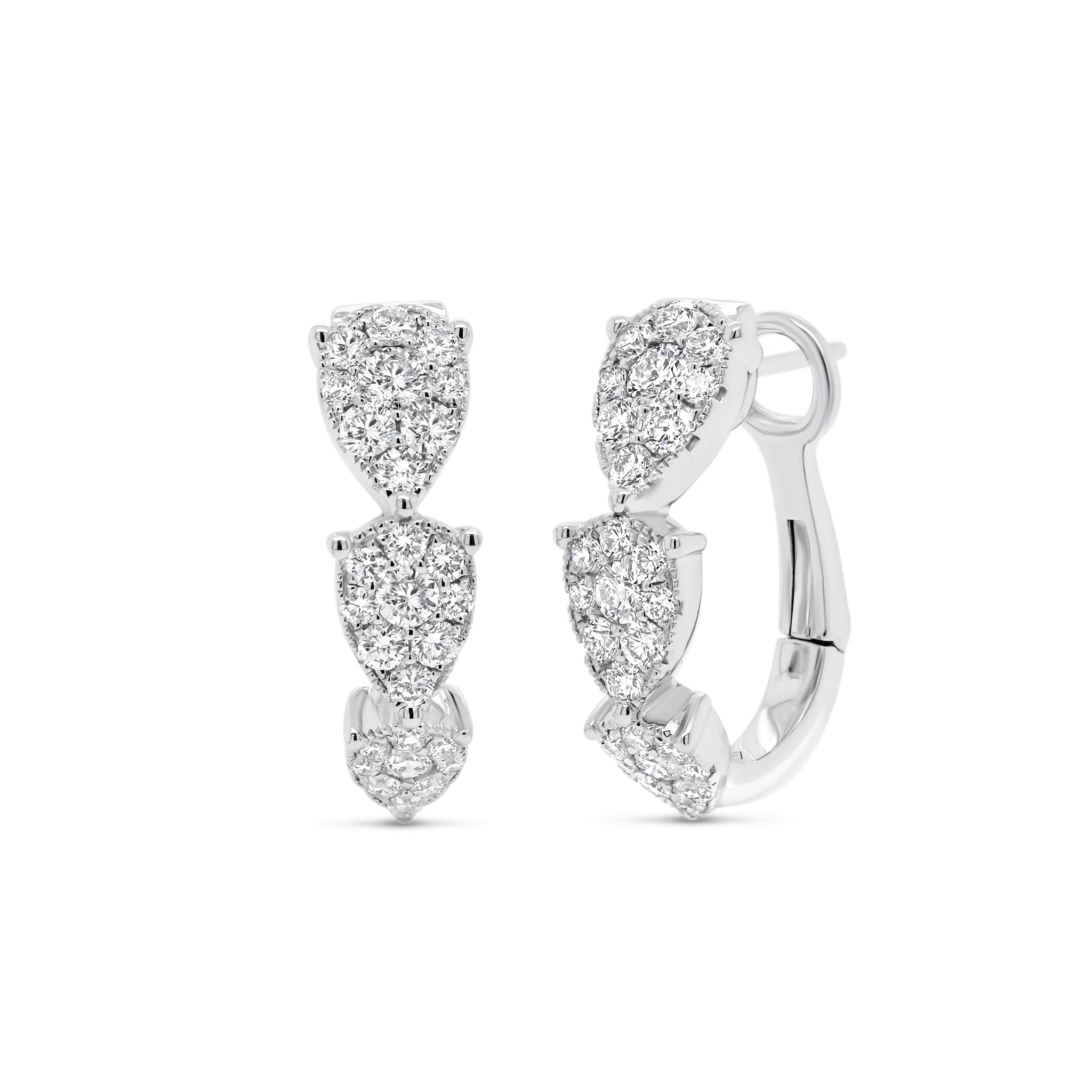 Not your standard hoops, these gorgeous earrings feature multiple round diamonds in teardrop-shaped settings. They’ll make a beautiful gift for any special occasion.