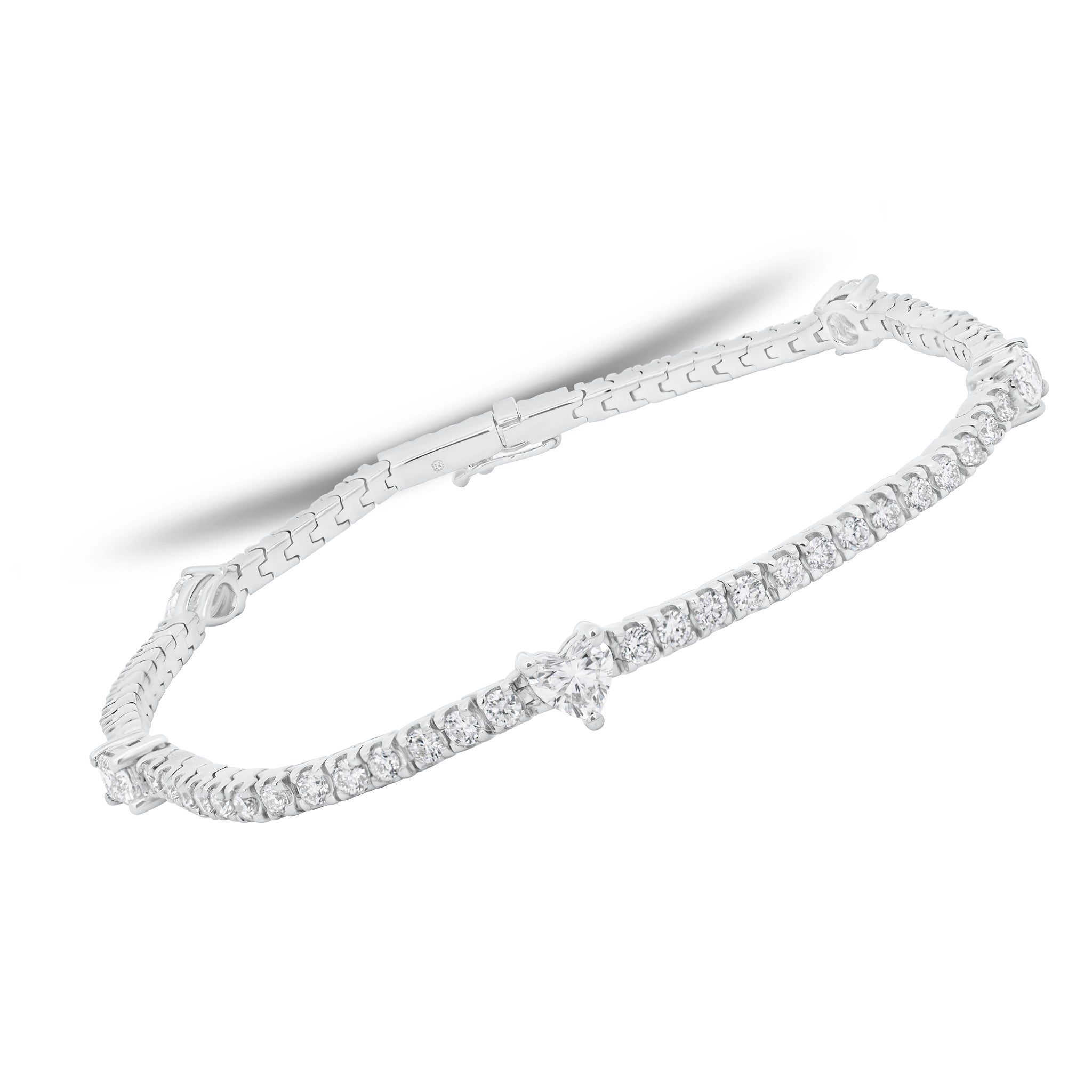 Impress the one you love with our dazzling diamond tennis bracelet. Featuring heart-shaped diamonds set among classic rounds, this truly special piece is sure to be cherished.