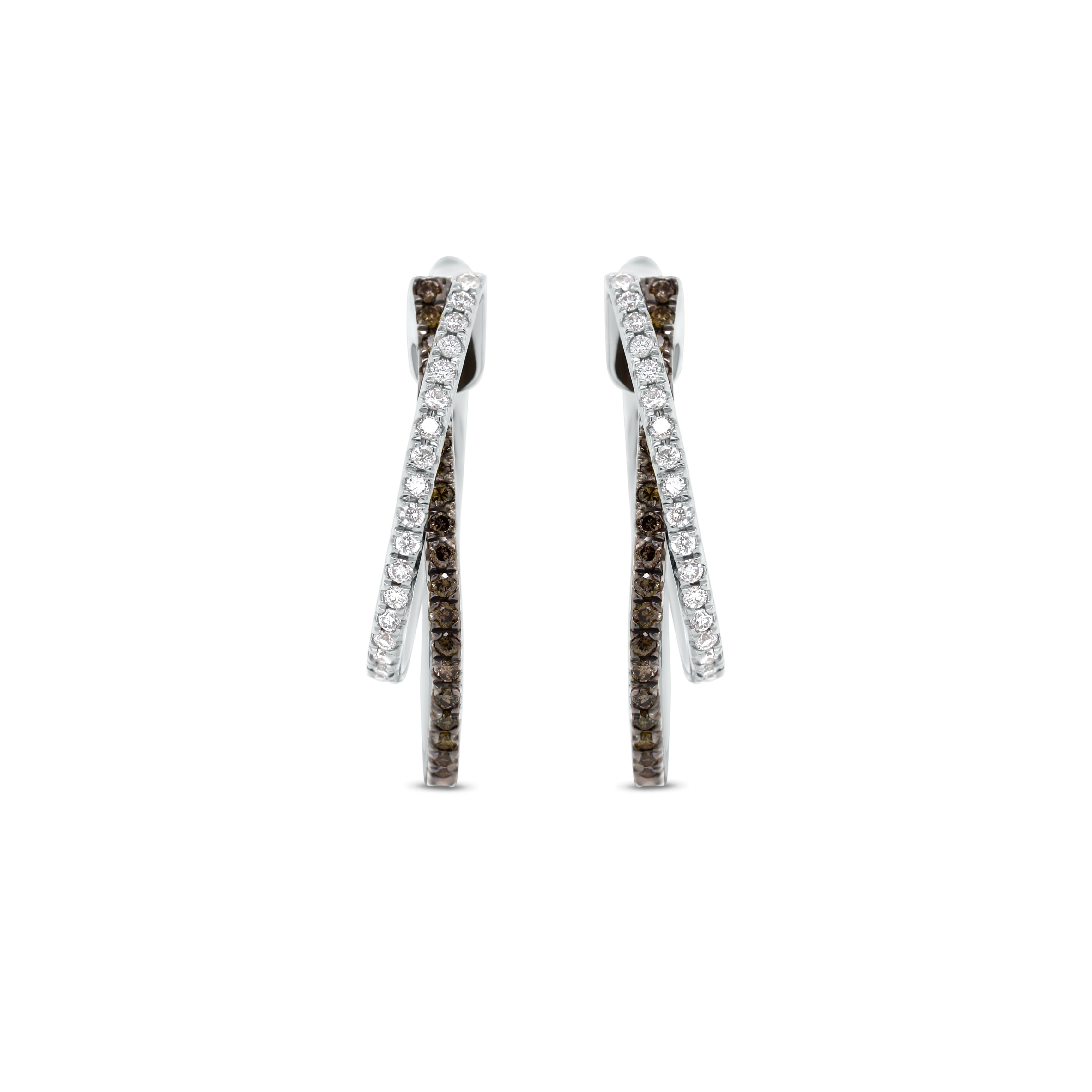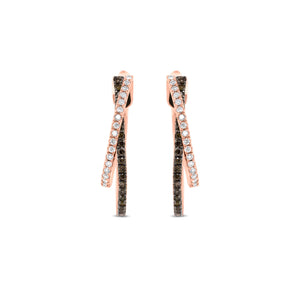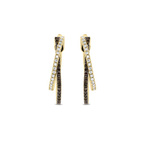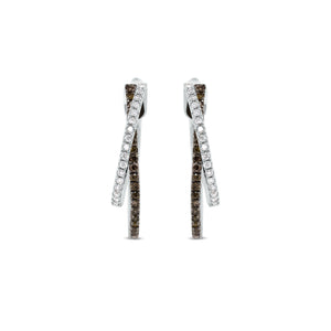 Colorless diamonds intertwine with black diamonds in these striking hoop earrings, making for the perfect pair.
