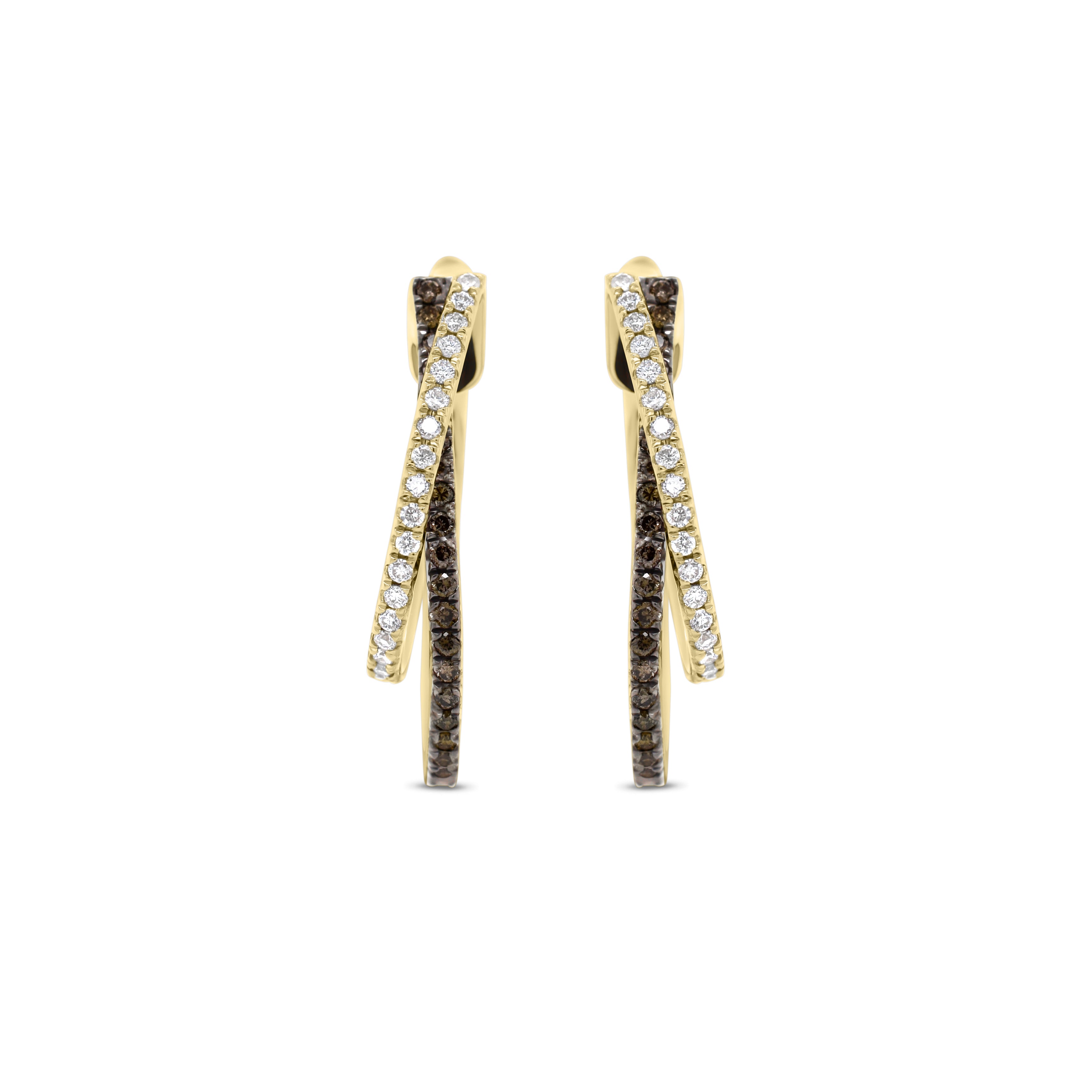 Diamonds in the Diamond Two-Tone Crossover Hoop Earrings are all natural Earth mined.