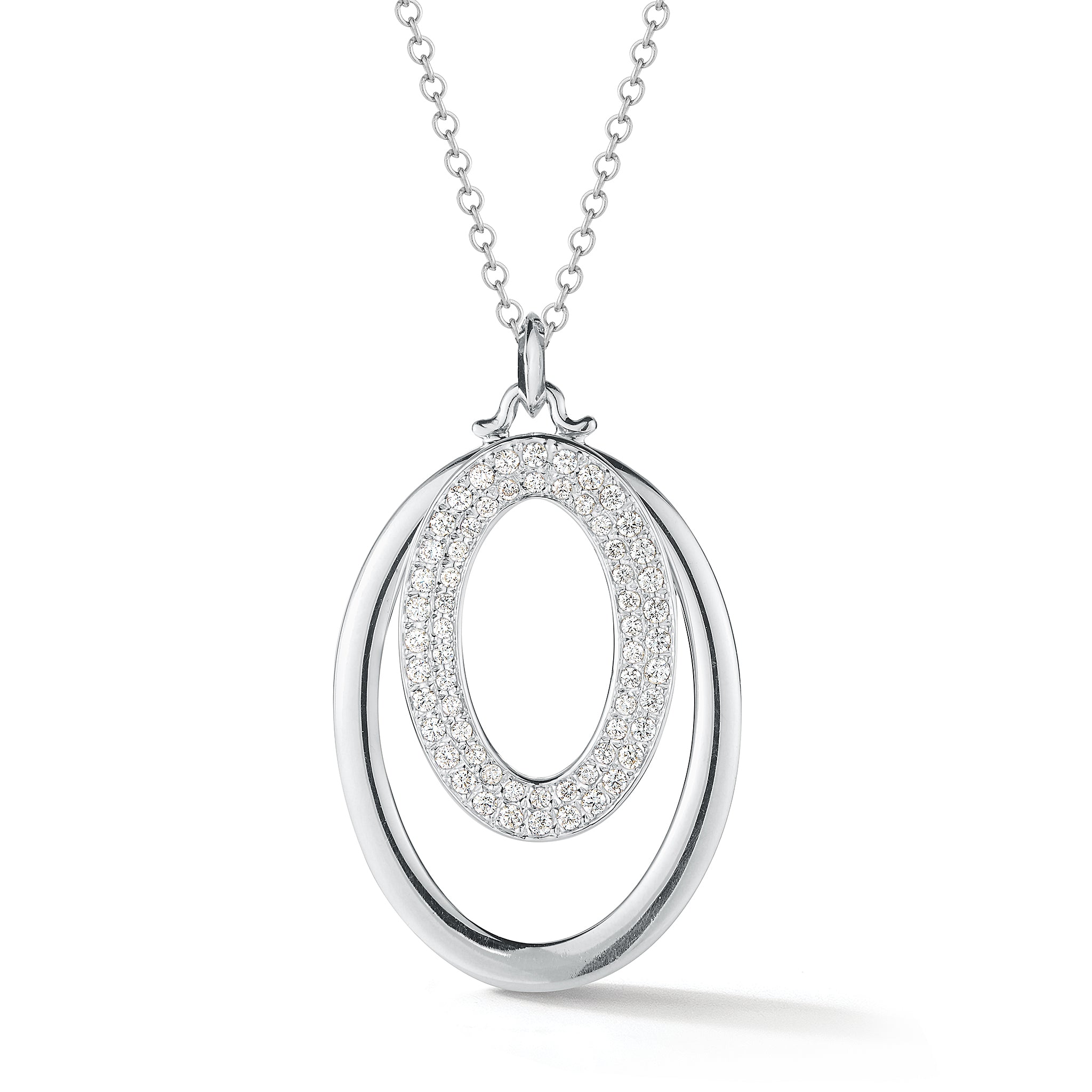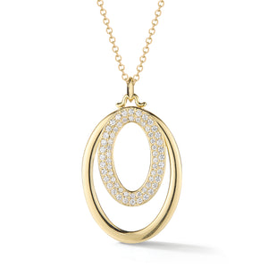 This beautiful piece makes a statement with its 14K solid gold hoop and pave diamond open oval pendant on an adjustable 16''-18'' cable link chain, in your choice of 14k white, yellow, and rose gold.