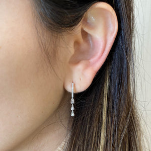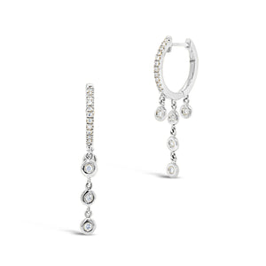 Designed to fit close to the ear, these stunning huggie earrings have a a nice pop of sparkle. What makes these huggies unique, is their bezel-set diamond drops.