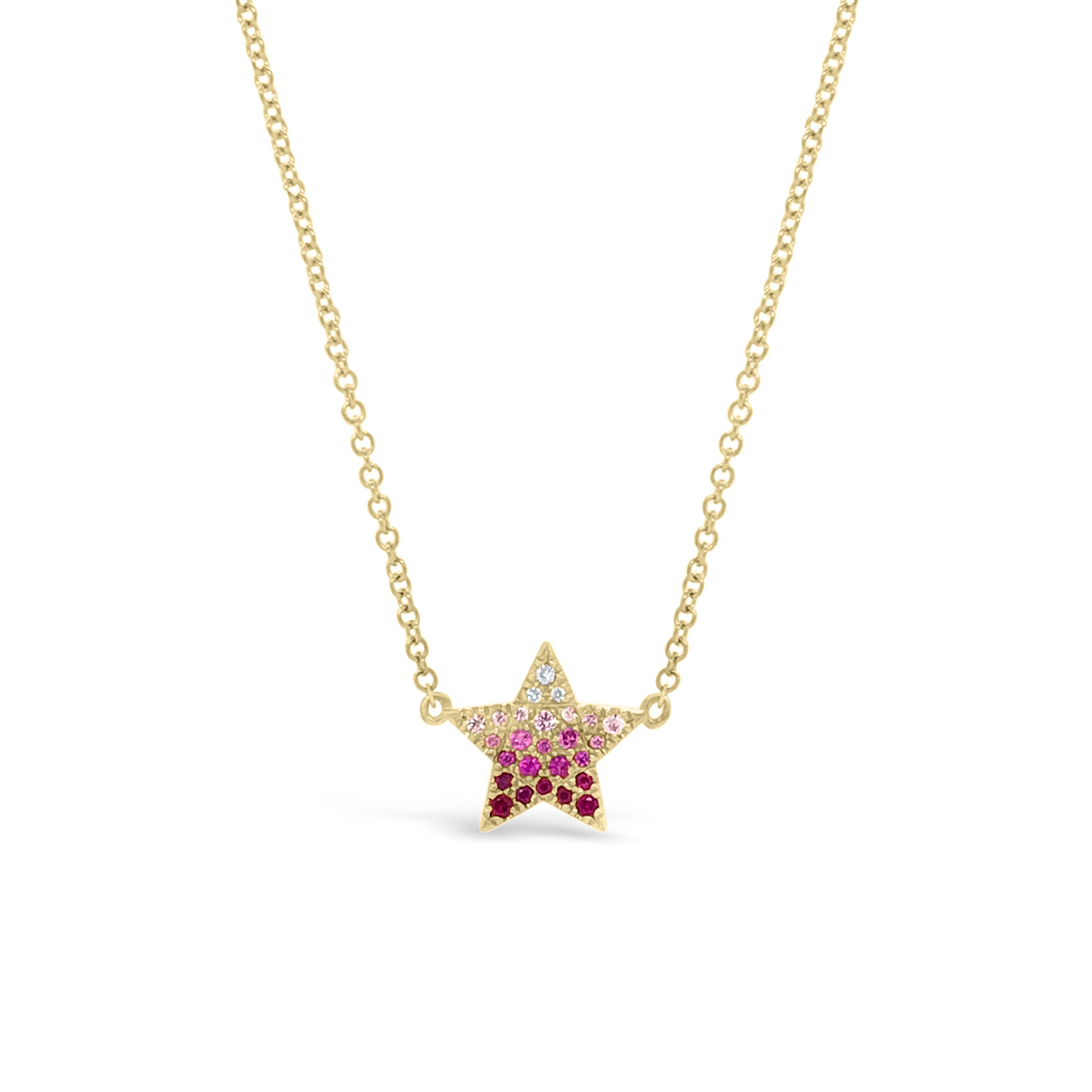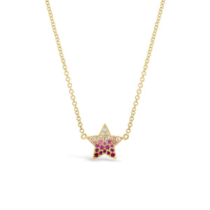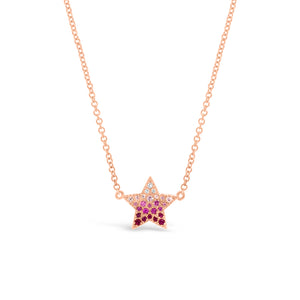 This stunning star pendant is composed of pave diamonds and rubies embedded in 14K gold of your choice.