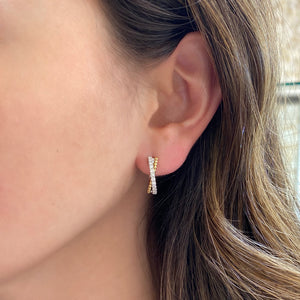 Diamonds in the Half Diamond Half Beaded Gold Huggie Twist Earrings are all natural Earth mined.