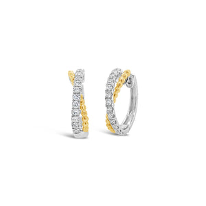 Designed to fit close to the ear, these stunning huggie earrings have a a nice pop of sparkle, in your choice of 18k gold. Unique with their half and half design.