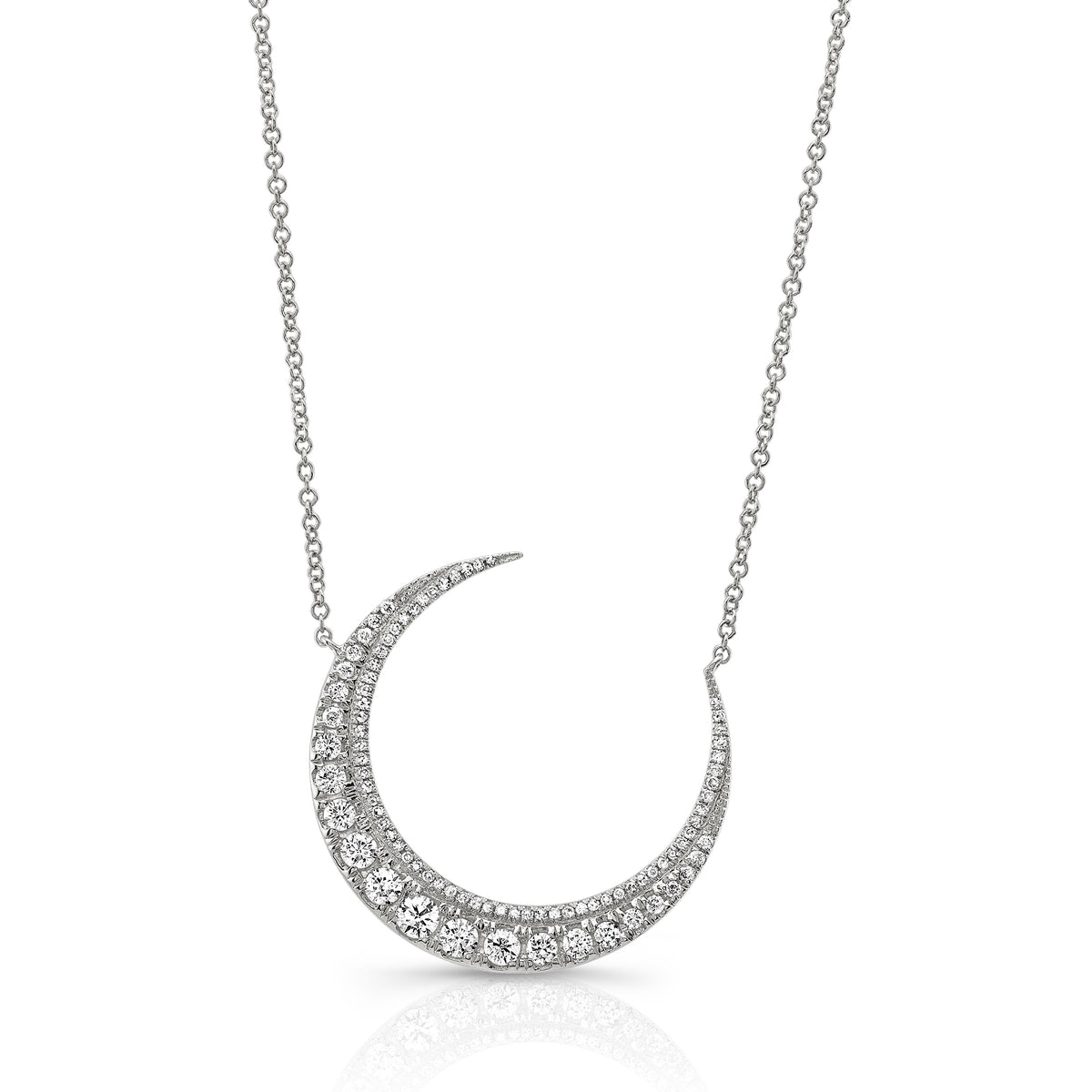 Be sure to make a statement with this stunning diamond crescent moon pendant necklace, available in your choice of 14K gold.