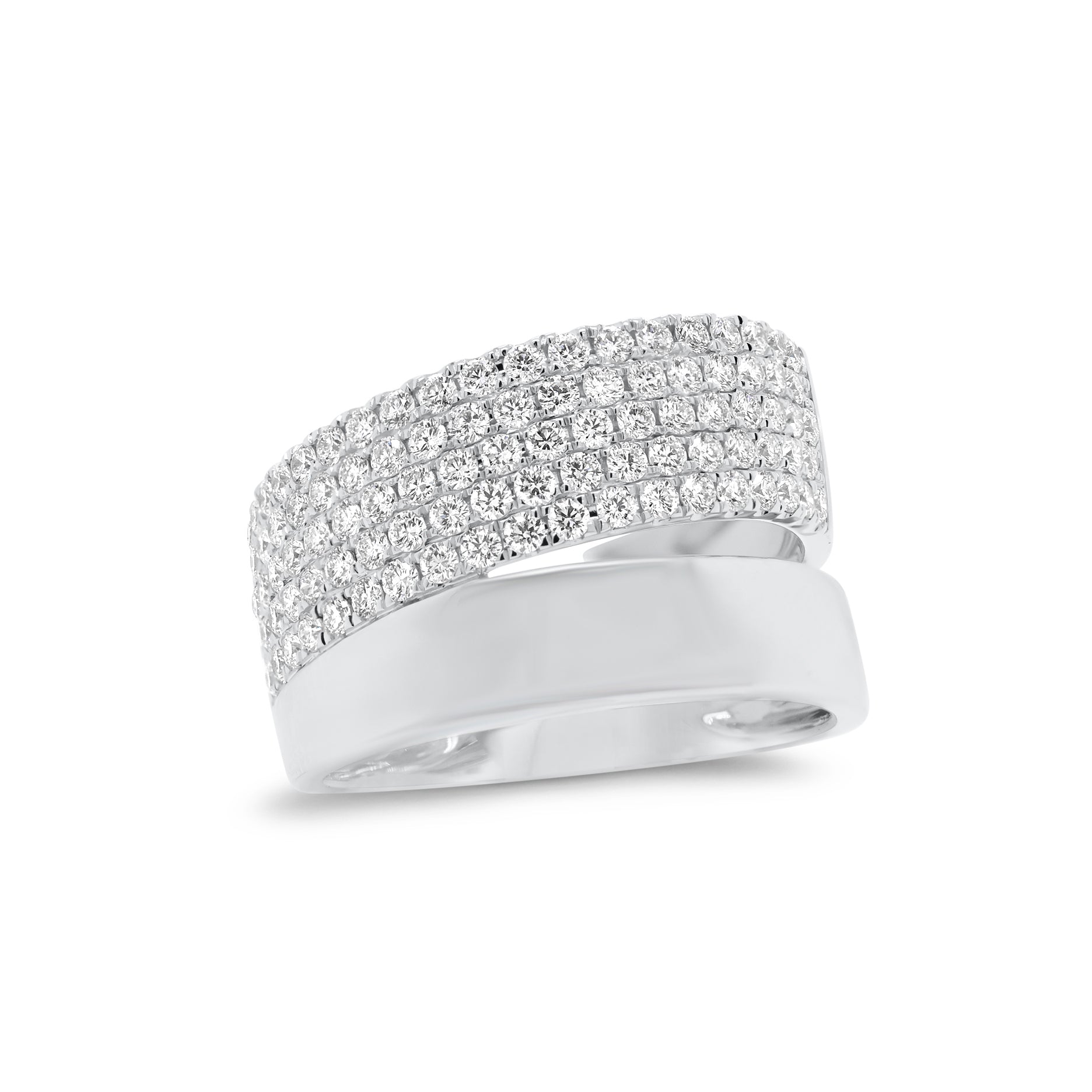 Make a modern style statement with this bold ring. Featuring a lustrous 14K gold band and a wider band set with glittering pave diamonds, this piece is sure to impress.