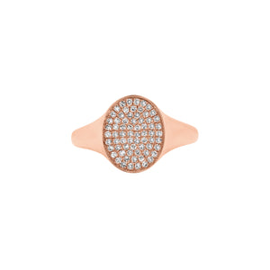 A classic style with a modern twist. This fine 14K gold signet ring features glittering diamonds in a striking pave setting.