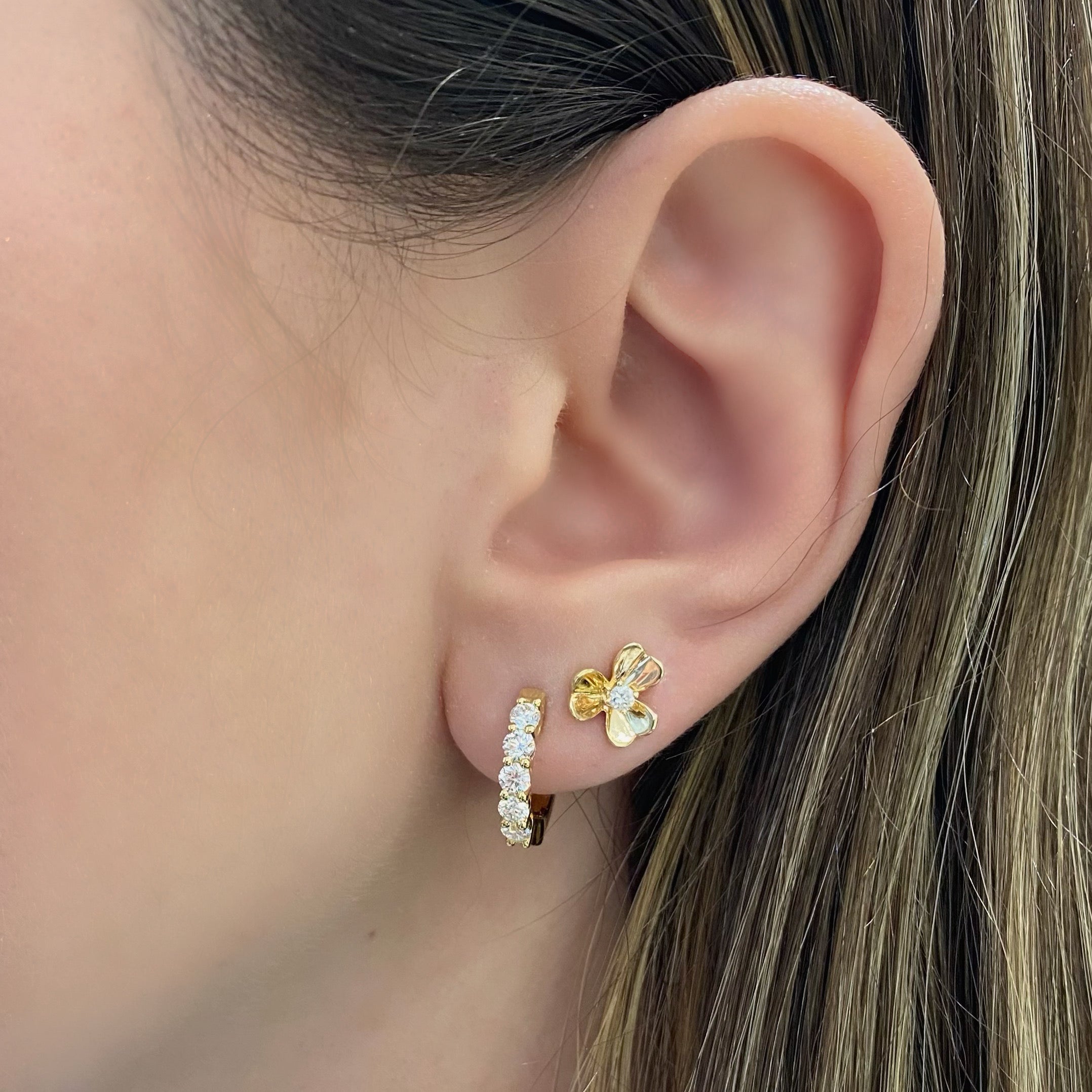 Effortlessly elevate your looks with these chic 18K gold huggie earrings. They each feature five prong-set diamonds for just the right amount of sparkle.