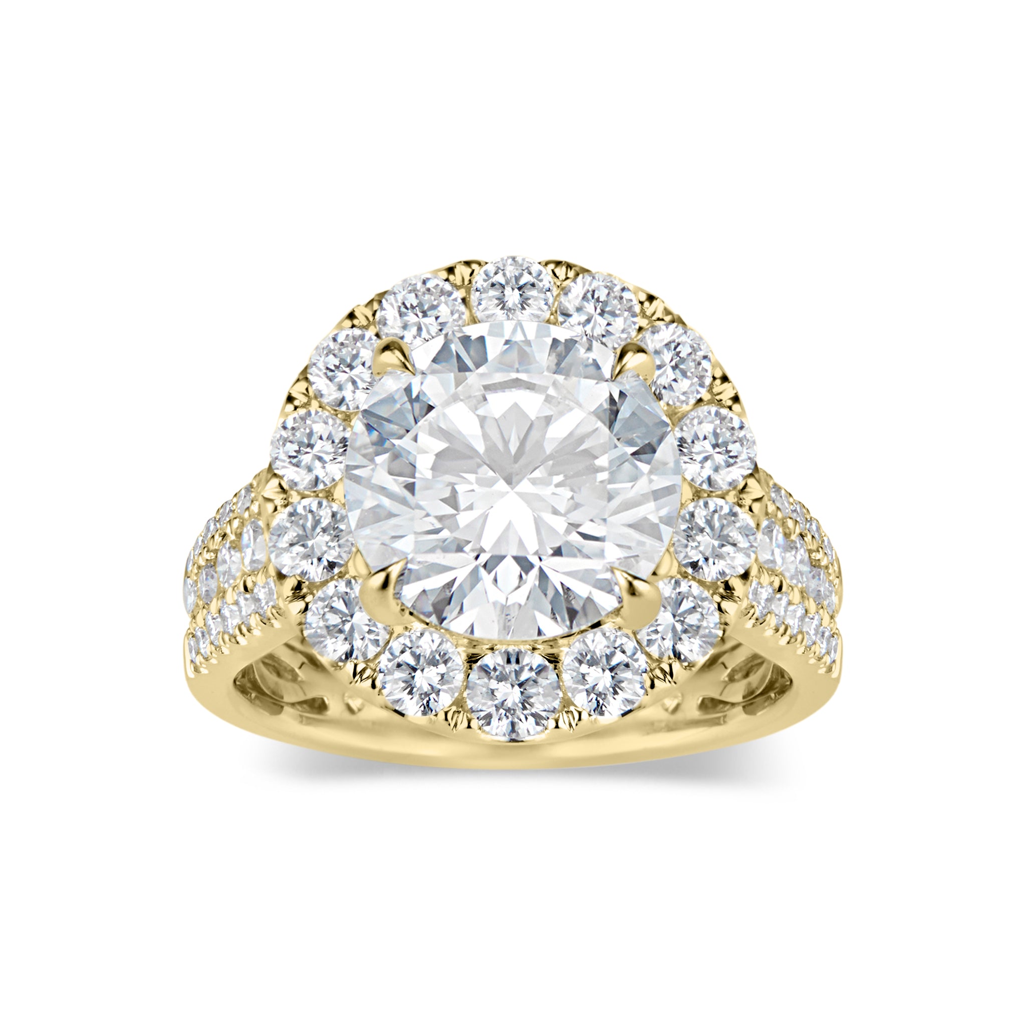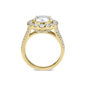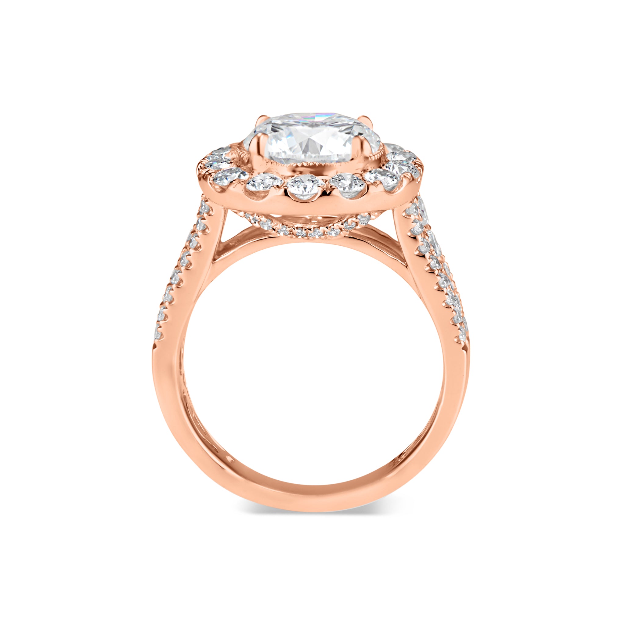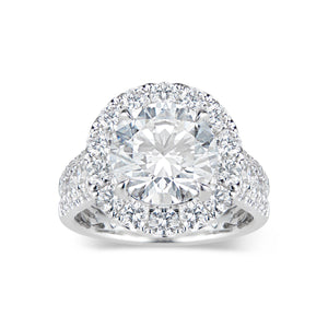 Halo engagement rings feature smaller diamonds set around the main stone. This romantic, feminine setting tends to make the center stone appear larger, all while offering enhanced, dazzling sparkle.