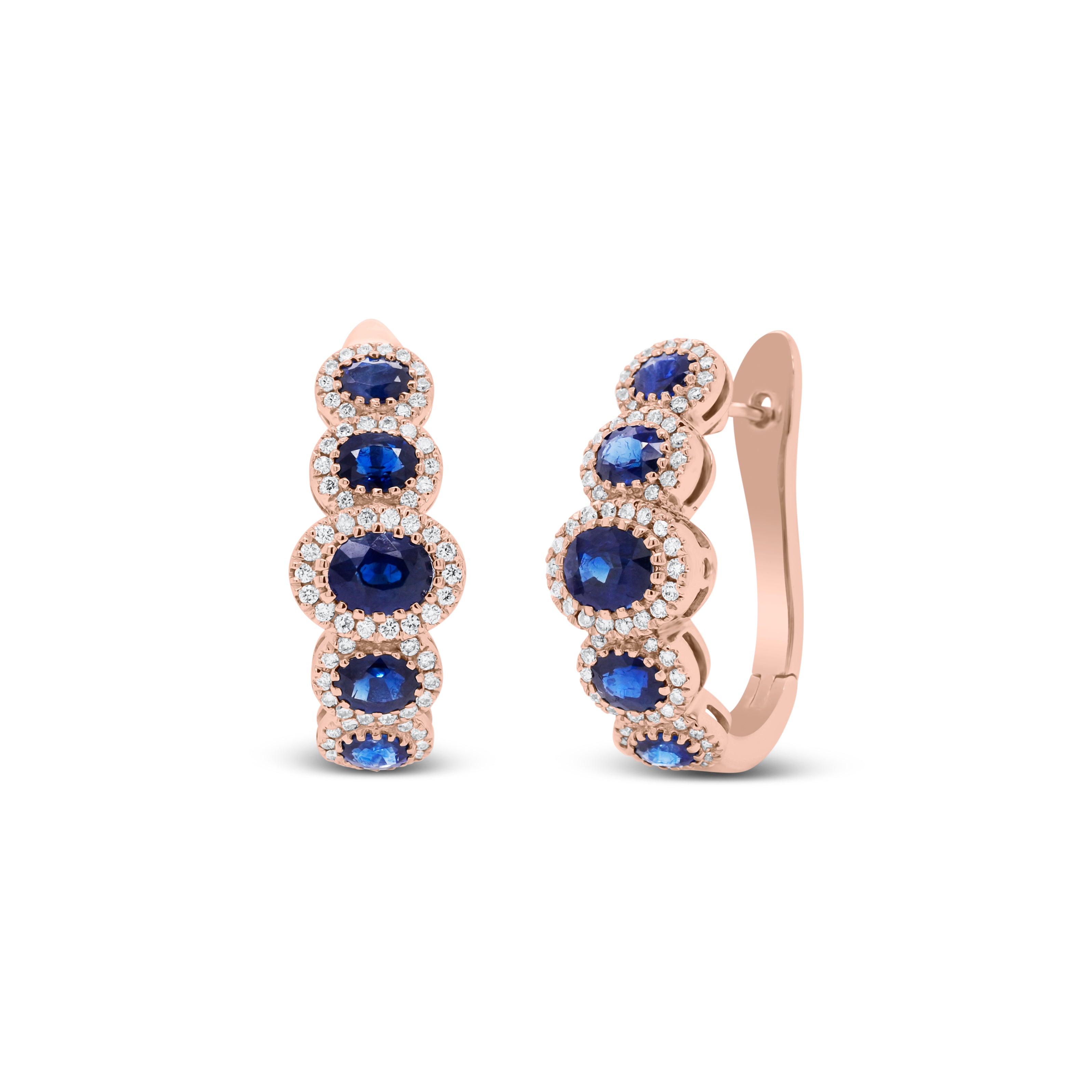 The deep blue hue of sapphire is enhanced by shimmering diamonds in this classic pair.