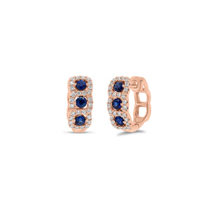 There’s nothing like the deep blue hue of a sapphire. These gorgeous huggie earrings feature round-cut sapphires set within cushion-shaped frames of sparkling diamonds. They’ll make a beautiful gift for any special occasion.