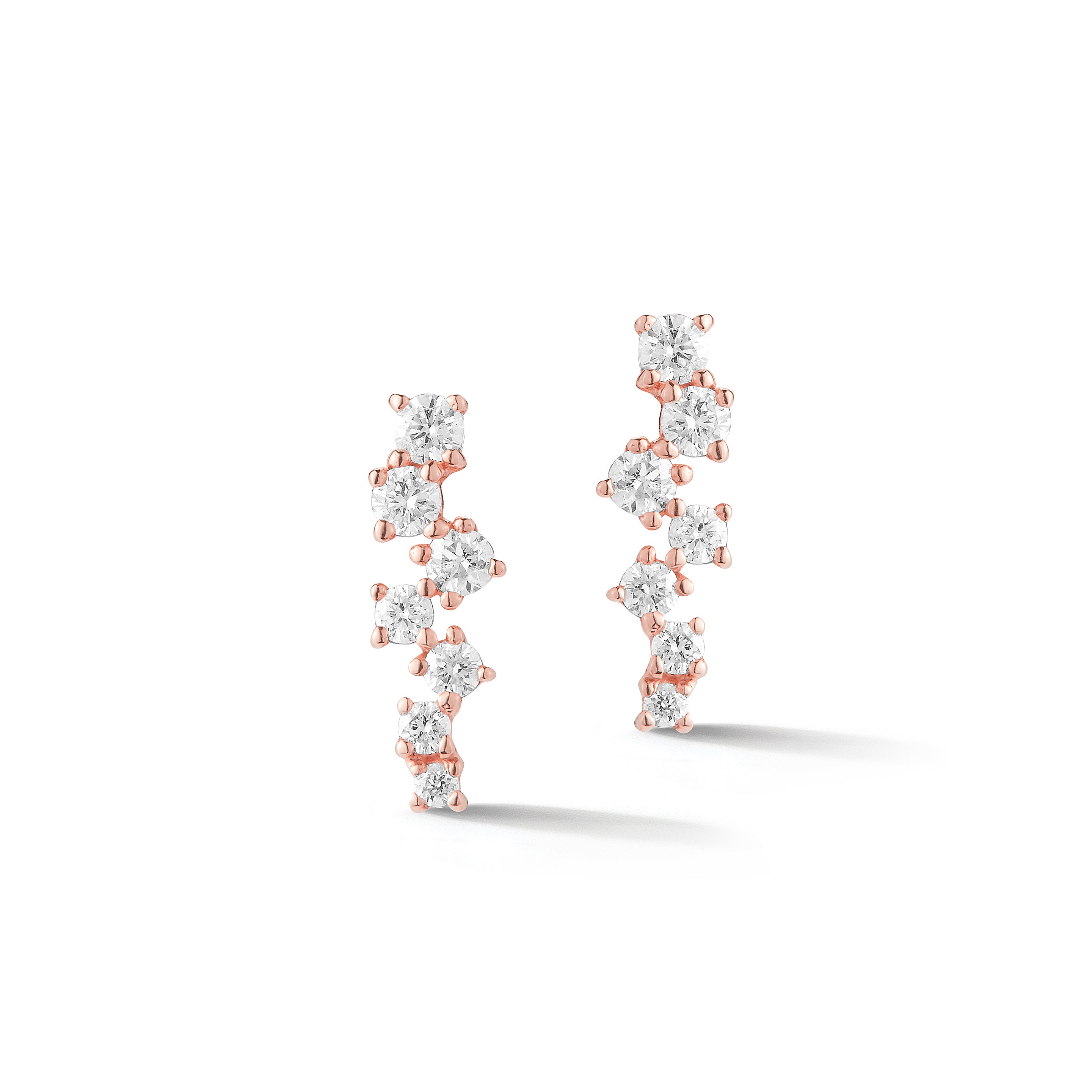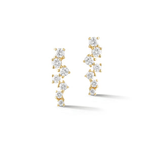 Beautifully crafted 14k gold earrings featuring a random scatter drop of sparkling round prong-set diamonds, post closure.