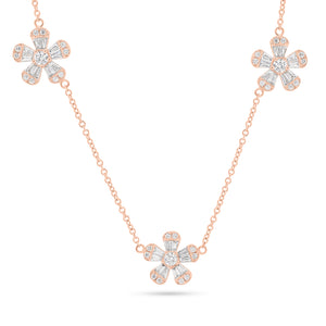 Diamonds in the Round & Baguette Diamond Flower Station Necklace are all natural Earth mined.